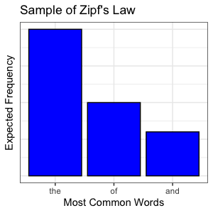 The simplest case of Zipf’s Law is a “1/f” function. Given a set of Zipfian distributed frequencies, sorted from most common to least common, the nth most common frequency will occur 1/n as often as the first.